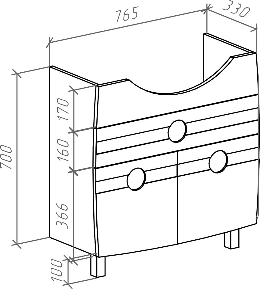 Тумба под раковину Bellezza Абрис 80см белый 00000006115