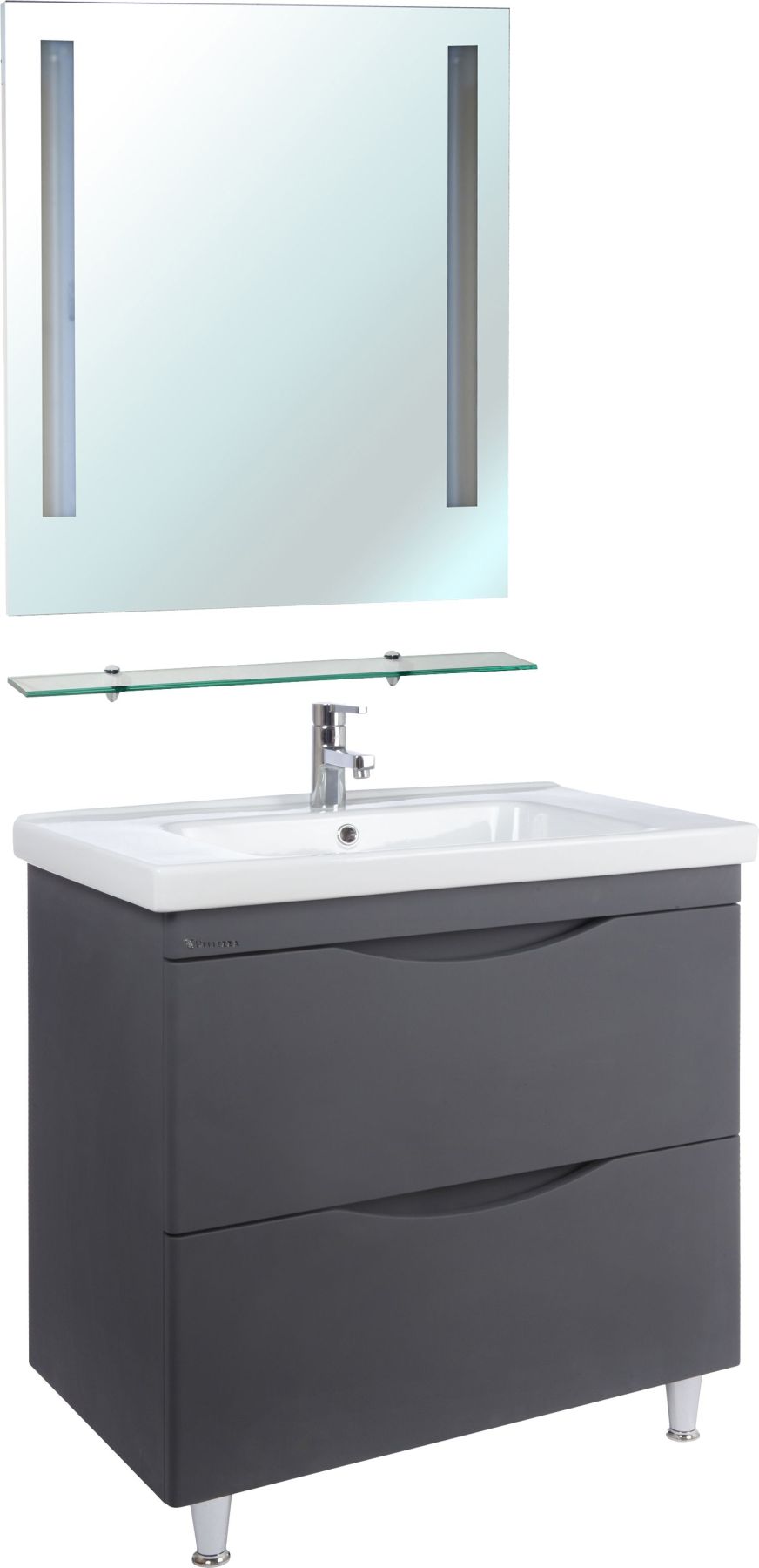 Тумба Bellezza Санриса шириной 80 см в серебристом исполнении — это воплощение технологичной эстетики и функциональности для компактных ванных комнат. Модель с интегрированной раковиной и гибким типом монтажа сочетает в себе современный дизайн, практичность хранения и устойчивость к влажной среде.
