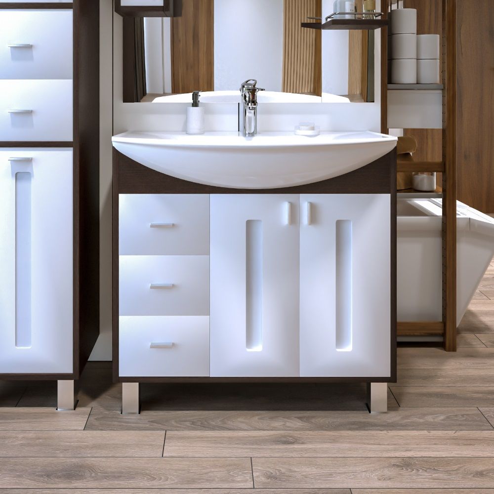 Тумба под раковину Бриклаер Бали 4627125411175 85 см венге/белый