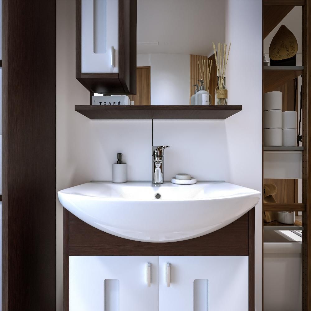 Удобная система хранения позволяет размещать все необходимое для гигиенических процедур, а её продуманные размеры отлично вписываются даже в небольшие помещения. Стильные ручки и элегантные фасады придают тумбе особый шарм, а разнообразие цветовых решений позволит выбрать модель, соответствующую любому интерьеру – от классического до модерн.