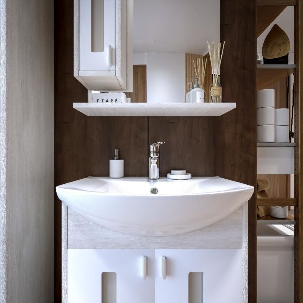 Удобная система хранения позволяет размещать все необходимое для гигиенических процедур, а её продуманные размеры отлично вписываются даже в небольшие помещения. Стильные ручки и элегантные фасады придают тумбе особый шарм, а разнообразие цветовых решений позволит выбрать модель, соответствующую любому интерьеру – от классического до модерн.