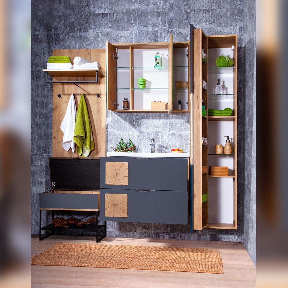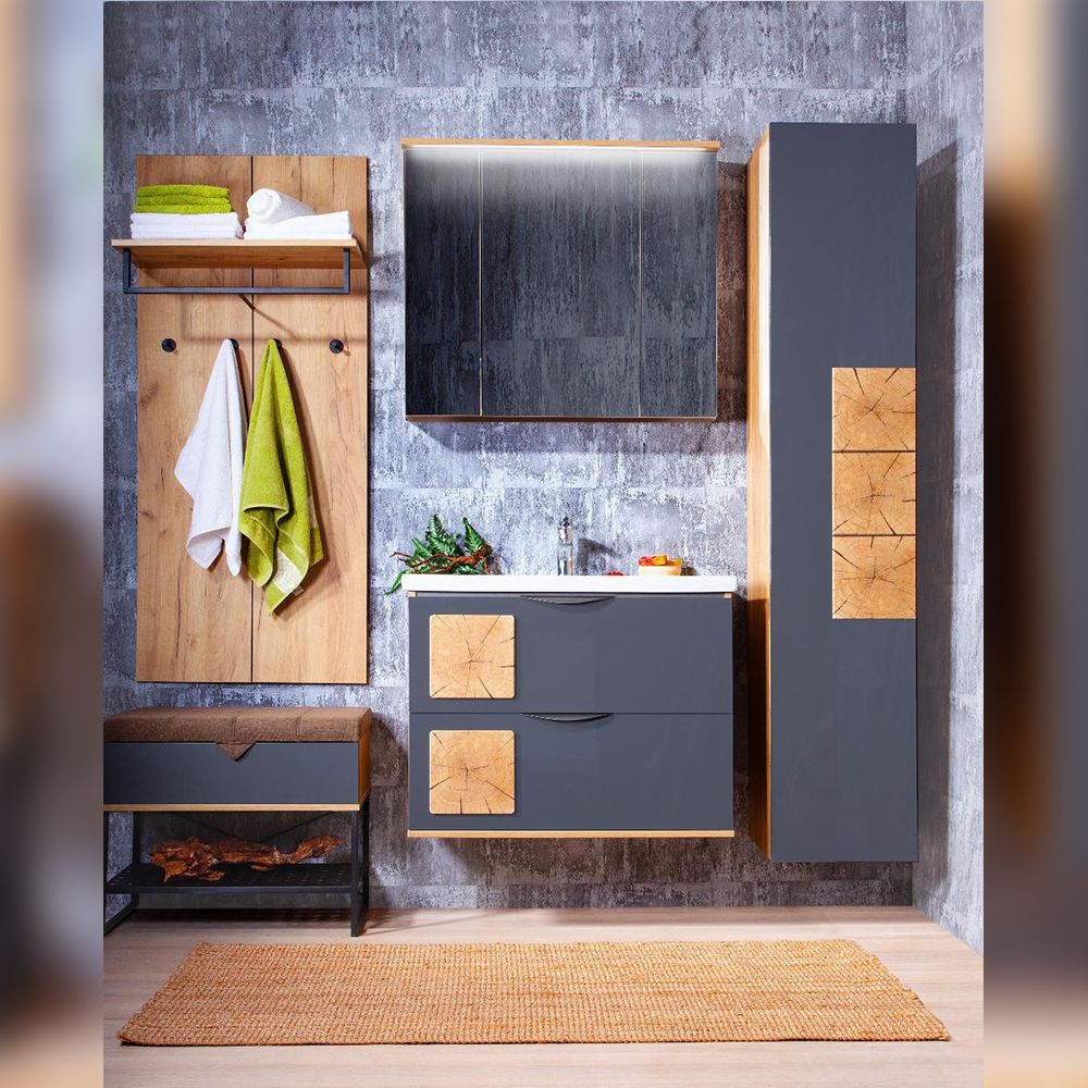 Тумба под раковину Бриклаер Форест 4627125414657 80 см дуб золотой/антрацит купить