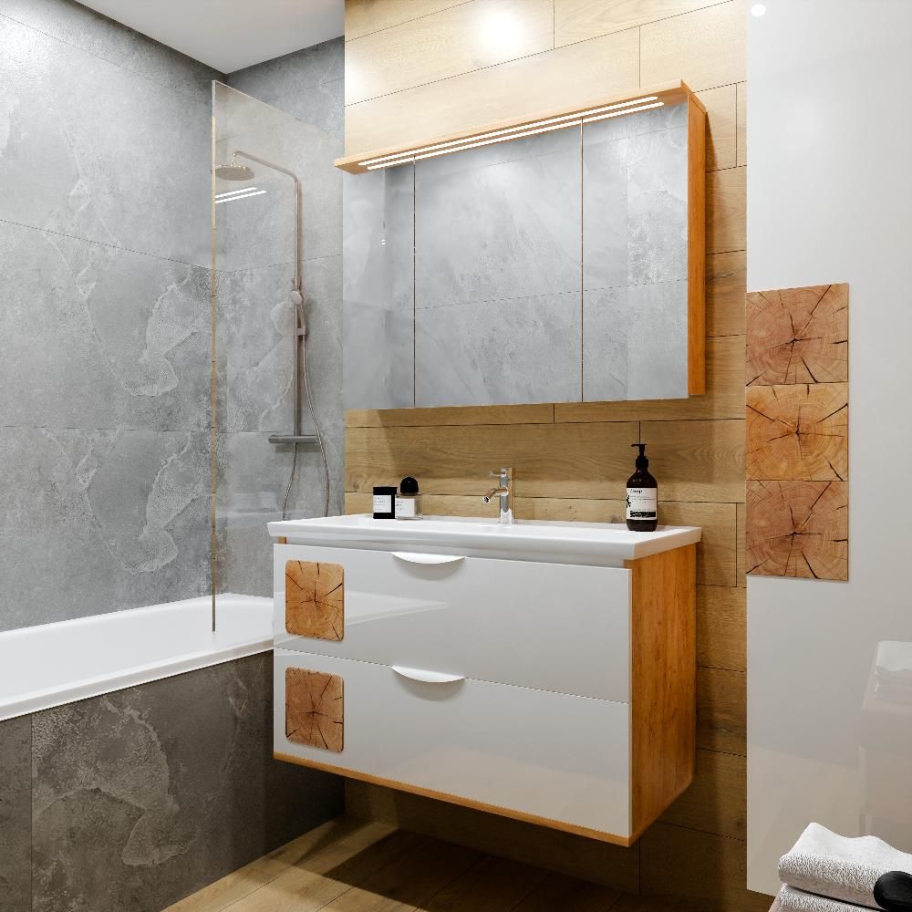 Тумба под раковину Бриклаер Форест 4627125416729 100 см дуб золотой/белый