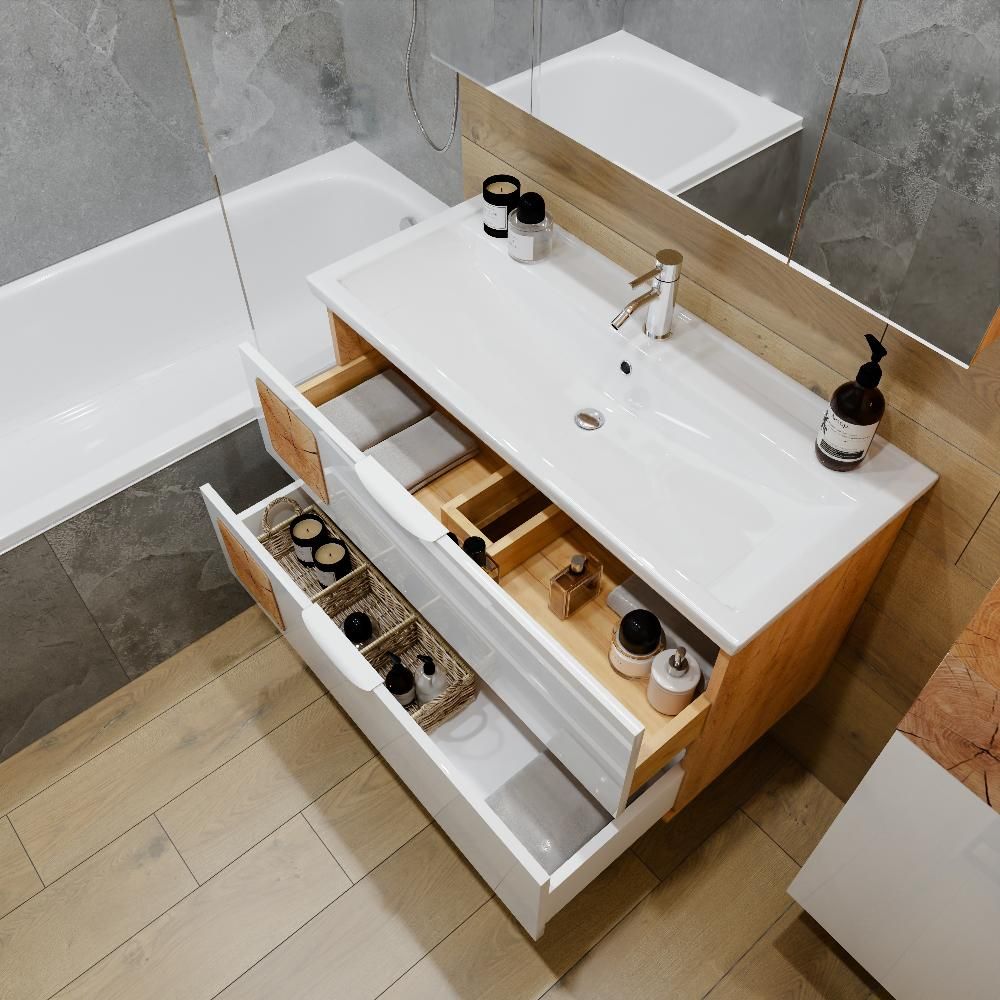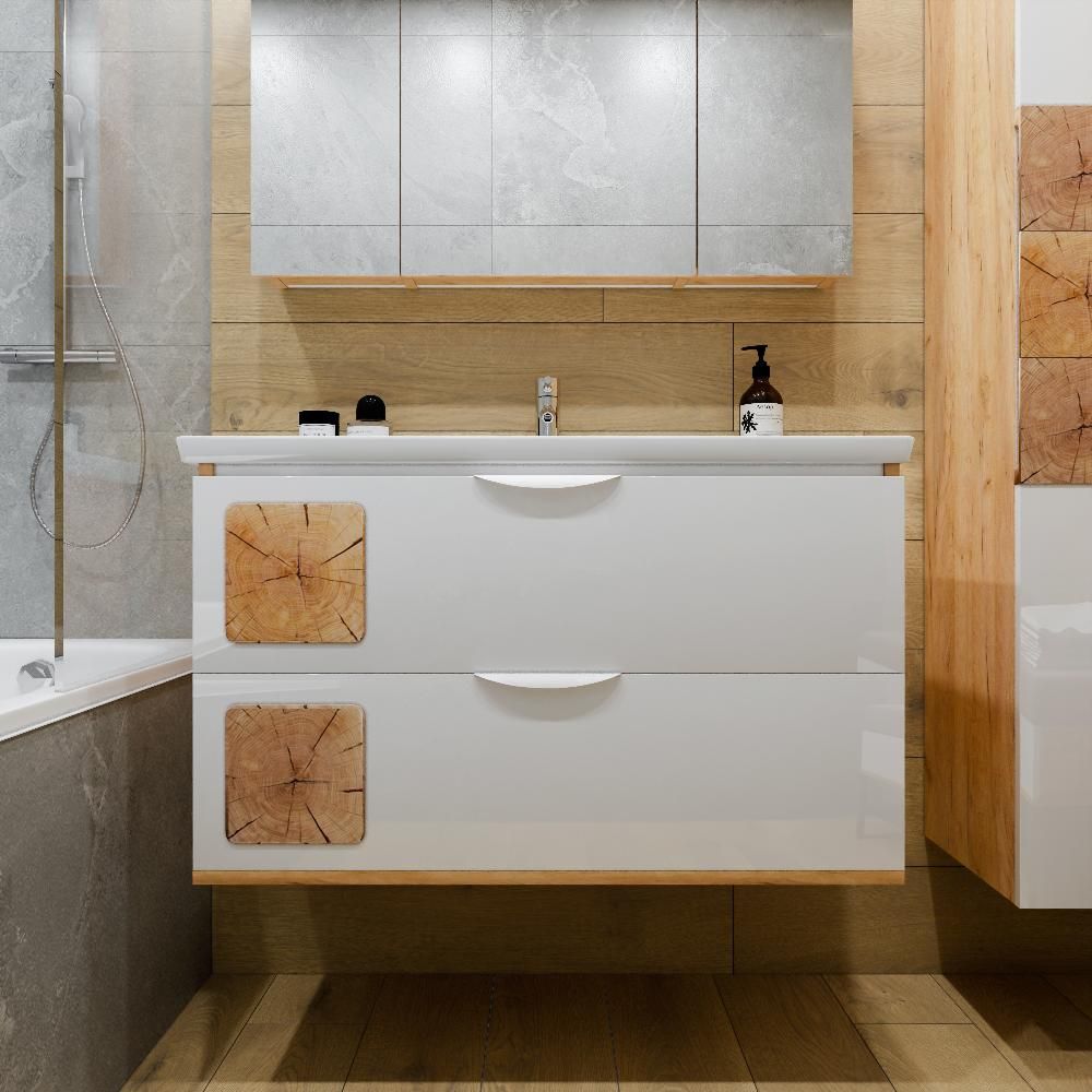 Тумба под раковину Бриклаер Форест 4627125416729 100 см дуб золотой/белый купить