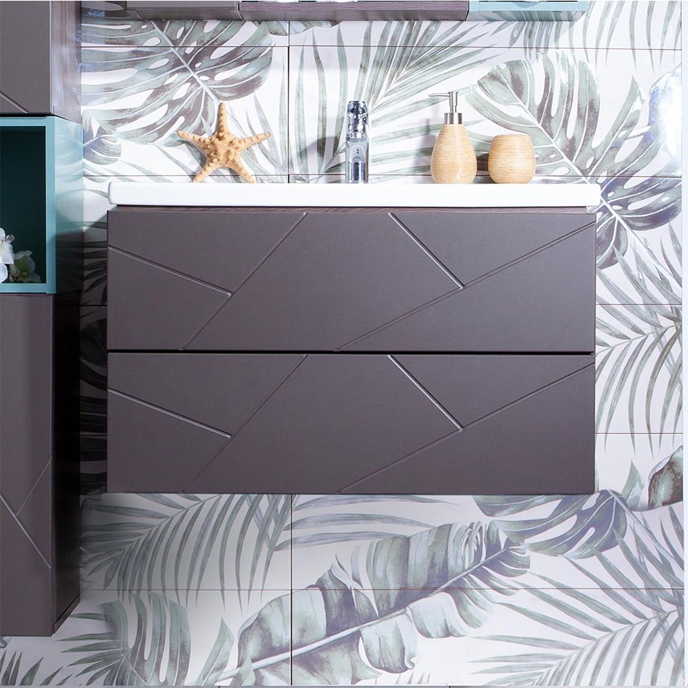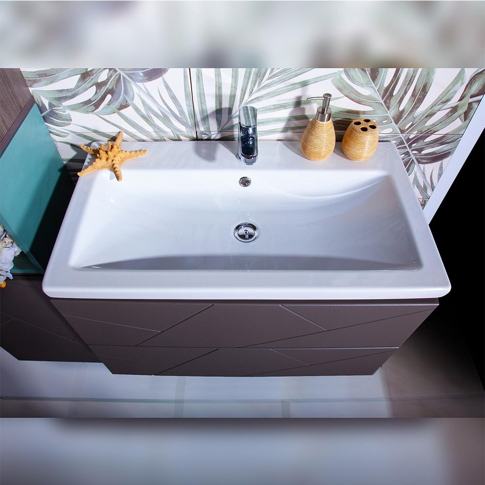 Тумба под раковину Бриклаер Кристалл 4627125414534 80 см ясень анкор темный/графит