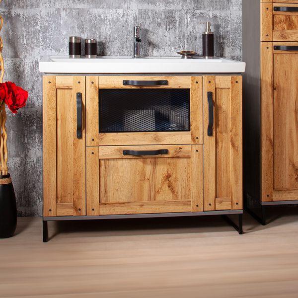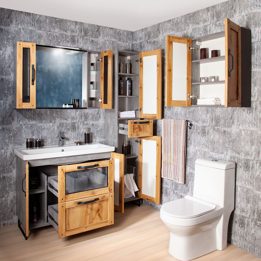 Удобная система хранения позволяет размещать все необходимое для гигиенических процедур, а её продуманные размеры отлично вписываются даже в небольшие помещения. Стильные ручки и элегантные фасады придают тумбе особый шарм, а разнообразие цветовых решений позволит выбрать модель, соответствующую любому интерьеру – от классического до модерн.