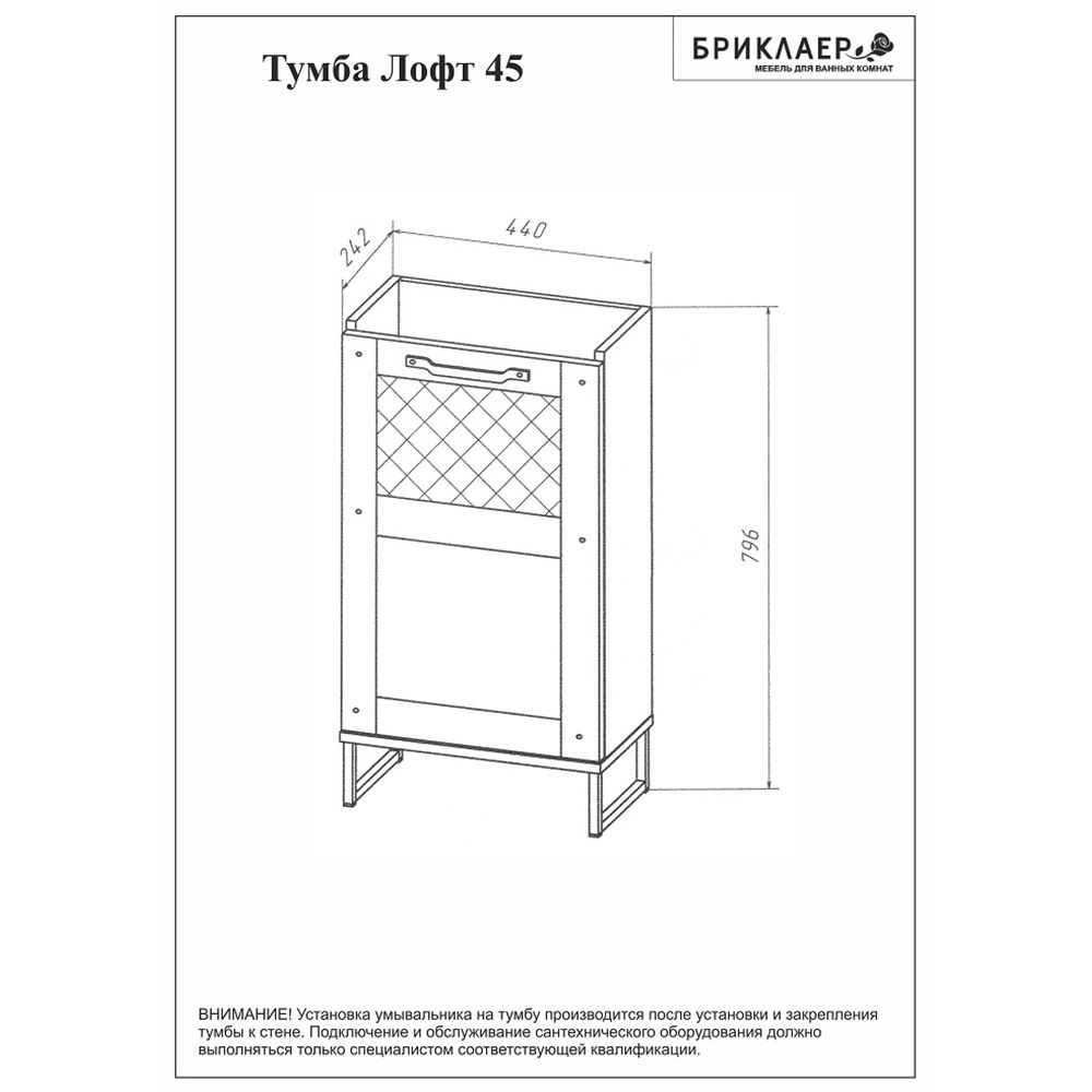 Тумба под раковину Бриклаер Лофт 4627125413384 45 см метрополитен грей