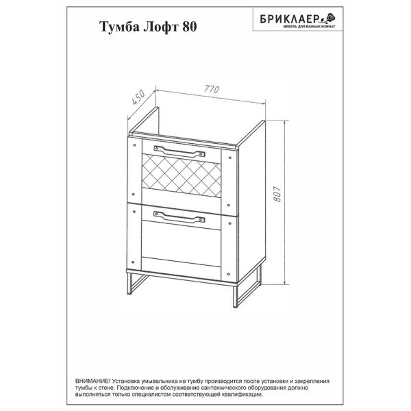 Тумба под раковину Бриклаер Лофт 4627125413414 80 см метрополитен грей