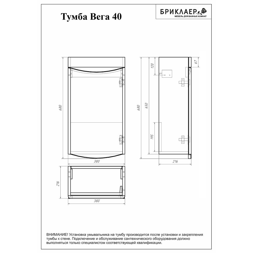 Тумба под раковину Бриклаер Вега 4627125414039 40 см белый купить