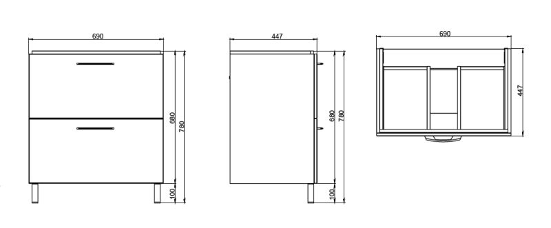 Cersanit - Отличное качество, по доступной цене!Высота 68смШирина 69смГлубина 44.6смТумба под раковину MELAR выполнена в нетеряющем актуальности белом цвете. Гладкие глянцевые фасады ящиков дополены хромированными ручками четкой геометричесокй формы. Скрытые направляющие ящиков снабжены доводчиками, что позволяет закрывать ящик мягко и бесшумно. Тумбу можно как подвешивать на стенку, так и устанавливать на ножки, что делает ее универсальным и функциональным решением для любой ванной комнаты.
