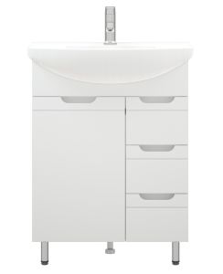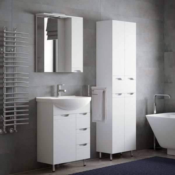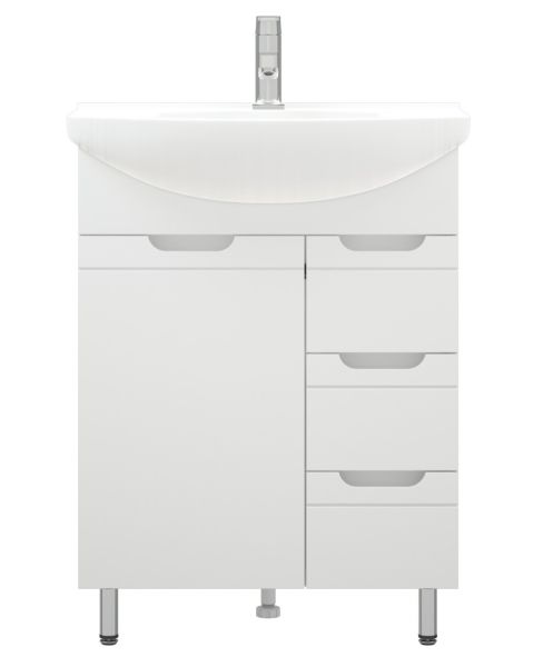 Тумба под раковину Corozo 65 Z3, 65 см, цвет белый, SD-00001509Коллекция мебели для ванных комнат "ЛЕЯ" создана для тех, кто ценит простоту форм, сочетание округлых и прямых линий, удобство эксплуатации. У мебели коллекции «ЛЕЯ» корпус выполнен из ЛДСП, фасады - из влагостойкой плиты МДФ, покрытие – пленка ПВХ. В верхней части стойки расположены полки, в нижней части - высокие боковины. Фурнитура с лицевой стороны фасадов отсутствует, вместо нее предусмотрены интегрированные ручки с декоративной полосой тонкой фрезеровки. Высота ящика по 110 мм. Тумба подходит под раковину Corozo Элеганс 65 см. Раковина приобретается отдельно.