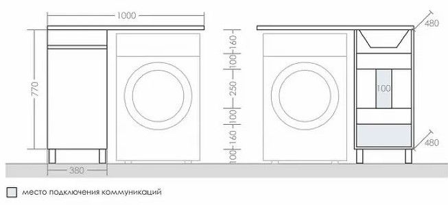 Тумба под раковину для стиральной машины СанТа Марс 700221 38см белый