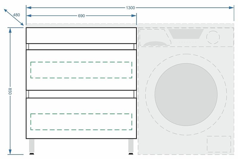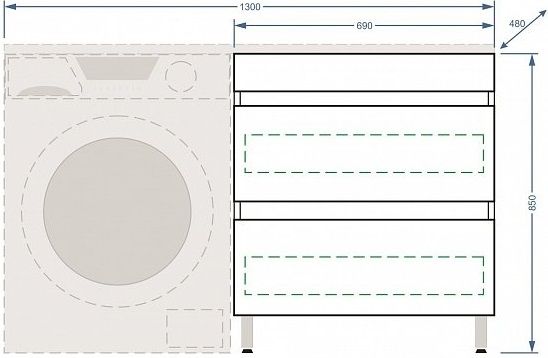 Тумба под раковину для стиральной машины Stella Polar Мадлен 130 белый SP-00000475