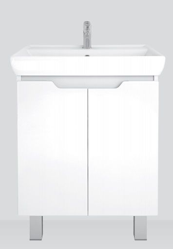 Тумба под раковину Dreja Q PLUS (D) 99.1008 55 см Белый глянецТумба Q PLUS (D), 55 см, подвесная/напольная, 2 дверцы, с опорами, белый глянец