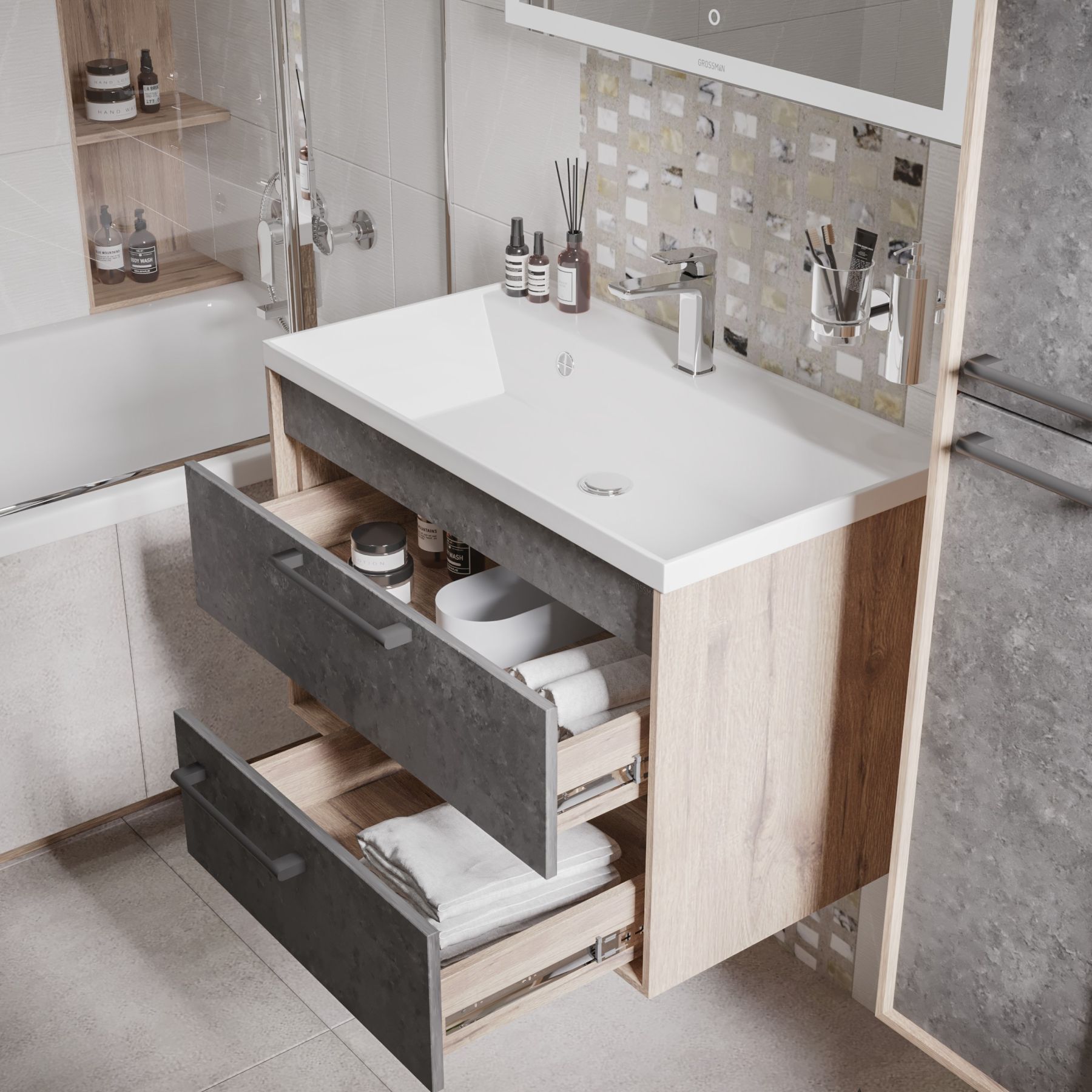 Тумба под раковину Grossman Реал 80см веллингтон/бетон 108009