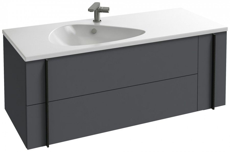 Тумба под раковину Jacob Delafon NOUVELLE VAGUE EB3036-E73Выполнена во французском стиле 50-х годов 20 века, но в современной интерпретации. Поможет в создании ультрамодной ванной комнаты с сохранением актуальной функциональности. Предназначена для использования в условиях повышенной влажности.Фасад и корпус тумбы выполнены из МДФ/ЛДСП. Покрытие - меламин - влагостойкий и прочный материал, обладающий высокой износостойкостью.