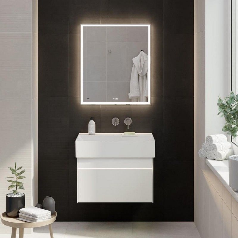 Подвесная тумба Logica — это детально проработанный дизайн и вдохновляющие технологические возможности. Так, при приближении к тумбе автоматически загорается подсветка между двумя выдвижными ящиками. Дистанцию срабатывания подсветки можно настроить с помощью инструкции из комплекта поставки. Фасады и корпус выполнены из МДФ в цвете «Белый белоснежный»: верхний фасад — глянцевый, нижний фасад и корпус — матовые. Тумба имеет два выдвижных ящика с открытием Push to open, с внутренней отделкой «Лён Антрацит». Верхний ящик, благодаря нестандартному расположению сифона, содержит больше полезного пространства и удивляет стеклянной вставкой в основании: через такое «окно» снизу струится свет, эффектно подчёркивая содержимое. В комплектацию тумбы входят крепление, гарантийный талон, инструкция по установке, инструкция по регулировке подсветки и открытия ящиков.