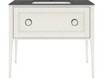 Напольная тумба с одним выдвижным и одним внутренним ящиками выполнена из массива ясеня с отделкой «открытая пора». Вместительный ящик с плавным закрыванием украшен двумя крупными ручками. Сочетается с керамическими столешницами PLAZA Classic шириной 100 см. Подходит для установки раковин с типом монтажа «накладная на столешницу» и «встраиваемая сверху».
