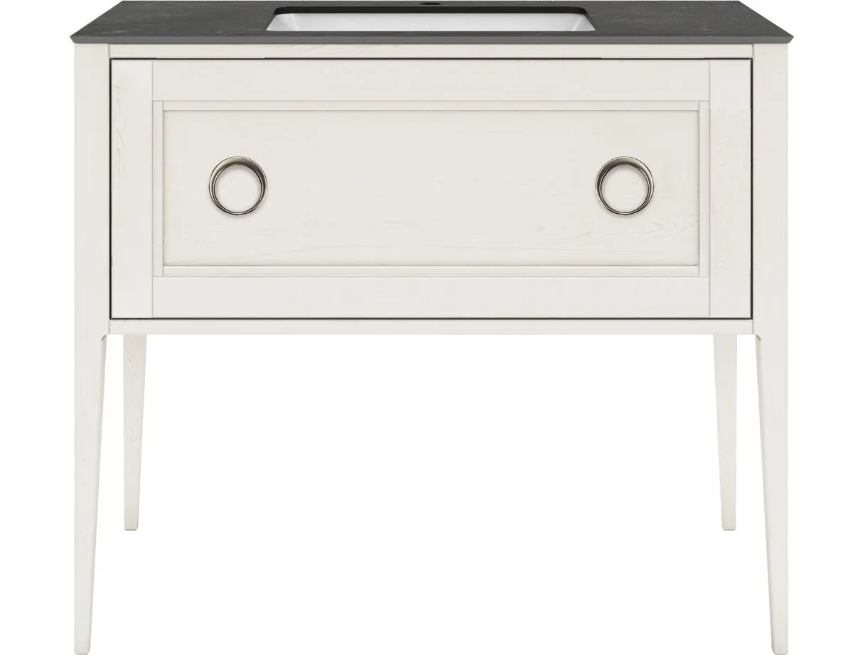 Напольная тумба с одним выдвижным ящиком выполнена из массива ясеня с отделкой «открытая пора». Вместительный ящик с плавным закрыванием украшен двумя крупными ручками. Сочетается с керамическими столешницами PLAZA Classic шириной 100 см. Подходит для установки раковин с типом монтажа «встраиваемая снизу».