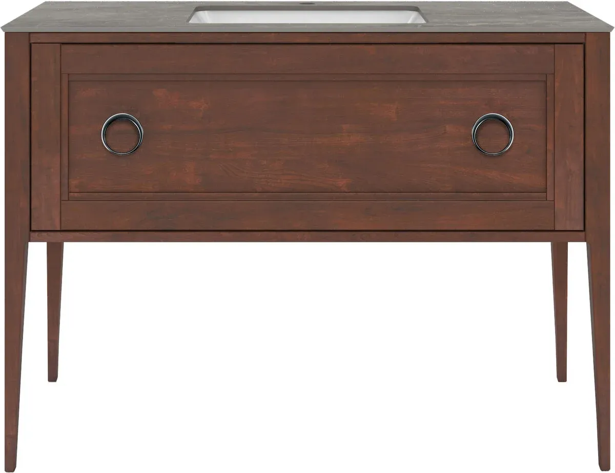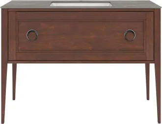 Напольная тумба с одним выдвижным и одним внутренним ящиками выполнена из массива ольхи с отделкой «закрытая пора». Вместительный ящик с плавным закрыванием украшен двумя крупными ручками. Сочетается с керамическими столешницами PLAZA Classic шириной 120 см. Подходит для установки раковин с типом монтажа «накладная на столешницу» и «встраиваемая сверху».