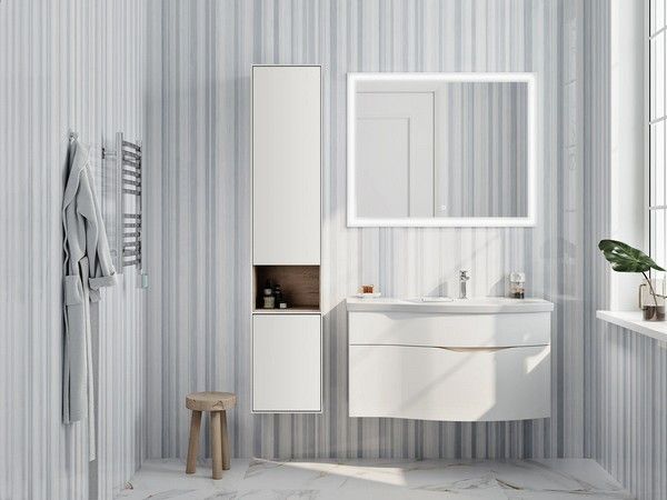 Белая матовая тумба с гнутым фасадом с правым расположением овальной зоны, ширина 100 см. Внутре... Подробнее
