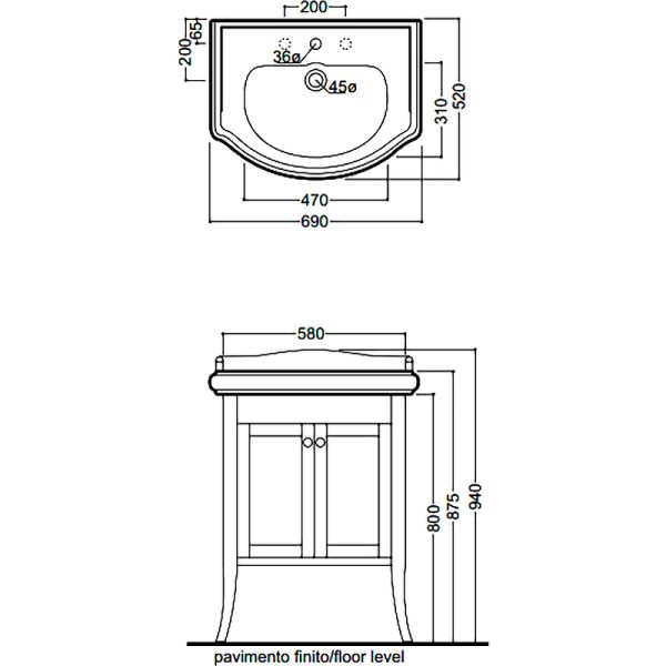 Тумба под раковину Kerasan Retro 735130 напольная белая купить