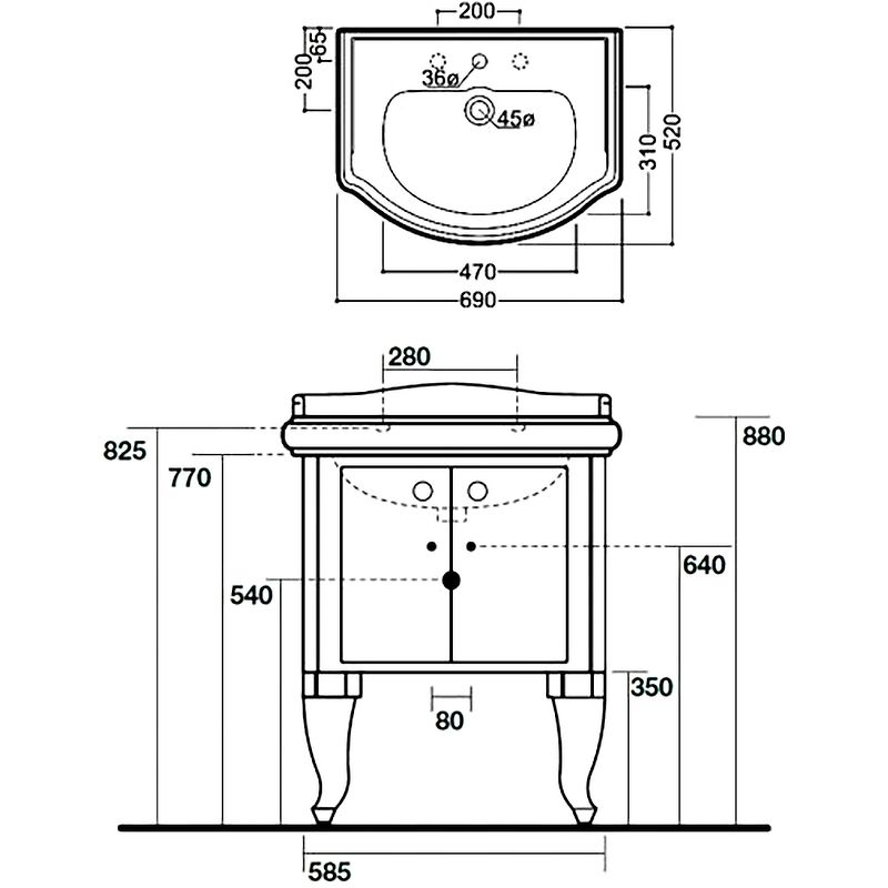 Тумба под раковину Kerasan Retro 7361K5 напольная белая