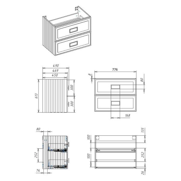 Тумба под раковину La Fenice Cubo FNC-01-CUB-B-80-2 77.6 смПодвесная тумба La Fenice Cubo TWIN FNC-01-CUB-B-80-2 обладает рядом неоспоримых преимуществ. Тумбу можно оснастить встраиваемой раковиной (арт. CU.NN.80), либо же приобрести столешницу в подходящем цветовом решении (арт. FNC-03-PL01-80, FNC-03-VS03-80) и установить на неё раковину-чашу. К данной тумбе необходимо выбрать белые или черные ручки, которые включены в стоимость тумбы (FNC-04-CUB-B-80 - белые; FNC-04-CUB-N-80 - черные). За счет входящего в комплект сифона Prevex, тумба обладает полноценными ящиками для хранения (без выреза). Ящики выполнены в фантазийной цветовой гамме "Лён антрацит". Тумба оснащена скрытыми доводчиками плавного закрывания частичного выдвижения Samet (Турция) и подвесным регулируемым механизмом Camar (Италия). Фасад и корпус тумбы покрыты краской и матовым лаком, что является надёжной защитой от влаги. Прекрасным и функциональным дополнением к тумбе станет пенал La Fenice Cubo белого цвета FNC-05-CUB-B-30