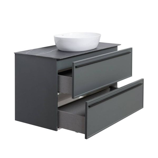 Тумба под раковину La Fenice Elba FNC-01-ELB-G-100-2 97.6 смПодвесная тумба La Fenice Elba TWIN FNC-01-ELB-G-100-2 обладает рядом неоспоримых преимуществ. Тумбу можно оснастить встраиваемой раковиной (арт.CU.NN.100), либо же приобрести столешницу в подходящем цветовом решении (арт. FNC-03-PL01-100, FNC-03-VS03-100) и установить на неё раковину-чашу. За счет входящего в комплект сифона Prevex, тумба обладает полноценными ящиками для хранения (без выреза). Ящики выполнены в фантазийной цветовой гамме "Лён антрацит". Тумба оснащена скрытыми доводчиками плавного закрывания частичного выдвижения Samet (Турция) и подвесным регулируемым механизмом Camar (Италия). Фасад и корпус тумбы покрыты краской и матовым лаком, что является надёжной защитой от влаги. Прекрасным и функциональным дополнением к тумбе станет пенал La Fenice Elba серо-зеленого цвета FNC-05-ELB-G-30