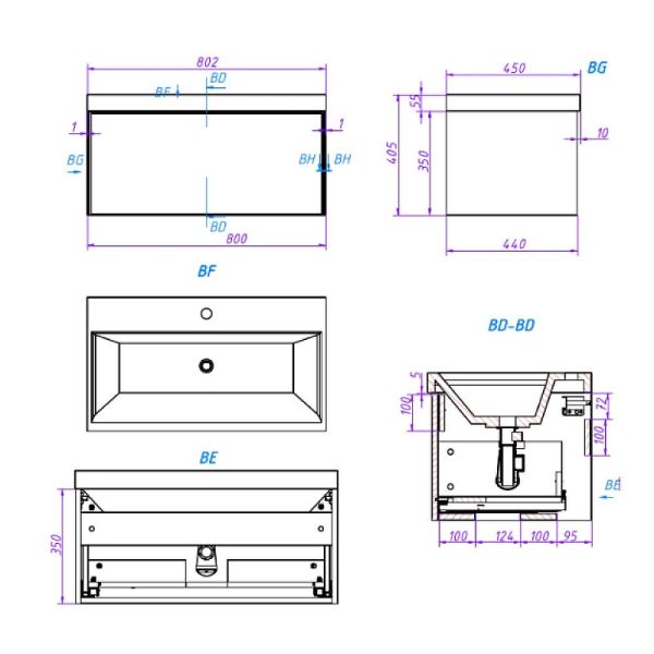 Габариты корпуса тумбы (ШхВхГ): 800х350х440 мм.