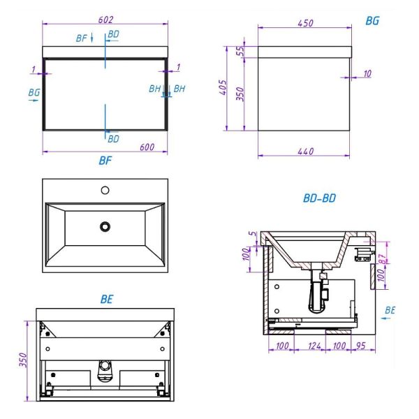 Тумба под раковину La Fenice Simpla FNC-01-SIM-BG-60 Синяя матовая 60 см