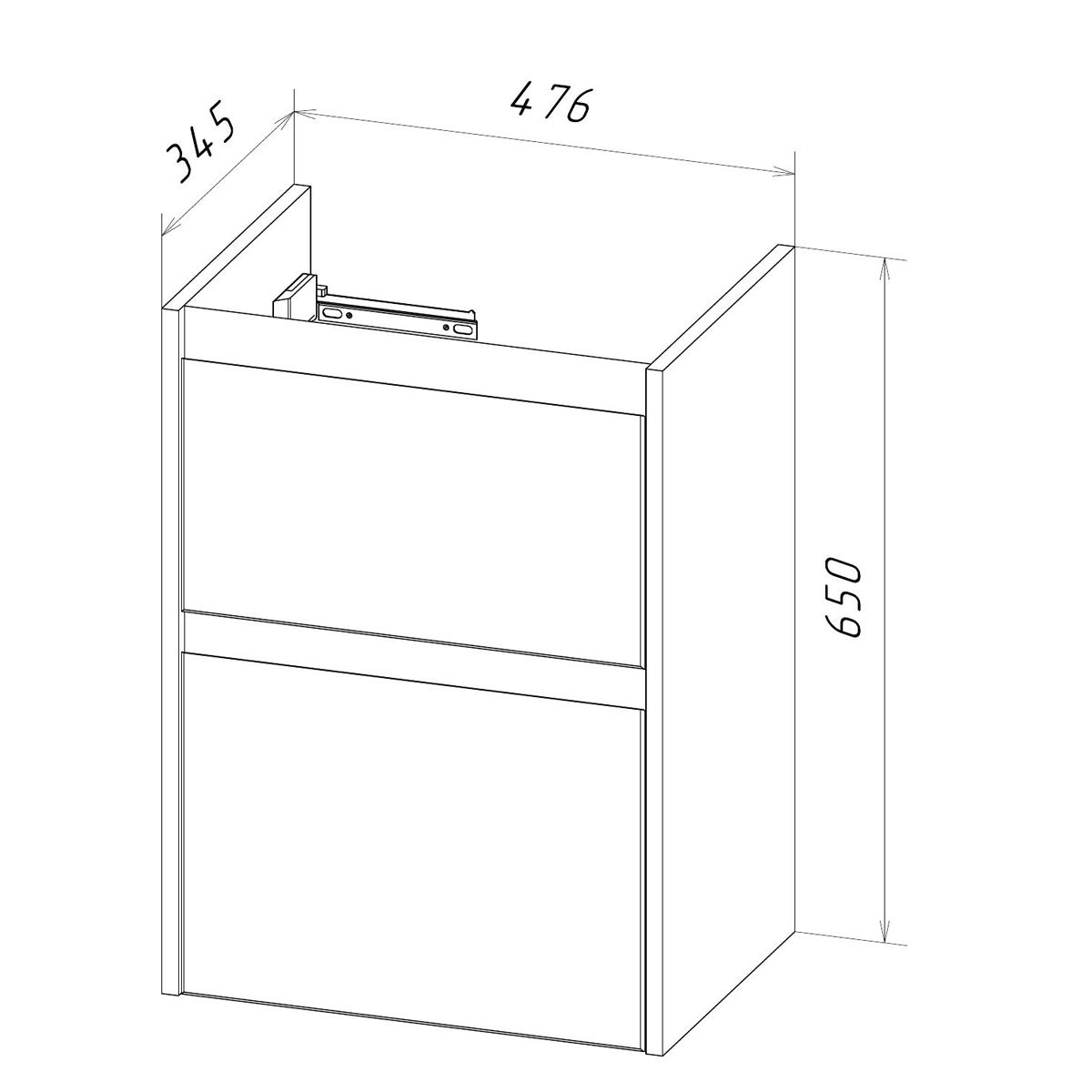 • Габариты без раковины (ШГВ): 476х345х650 мм;