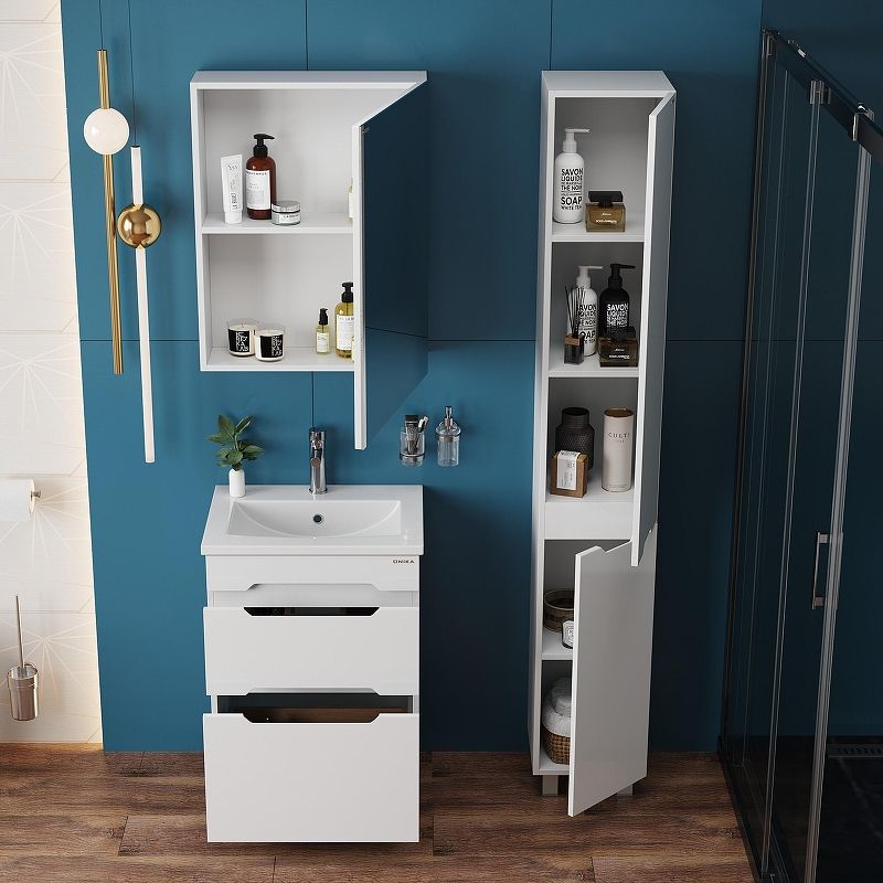 Напольная тумба для ванной комнаты Onika Айленд 50 сочетает в себе стильный минималистичный дизайн, белую глянцевую поверхность и высочайшее качество исполнения.