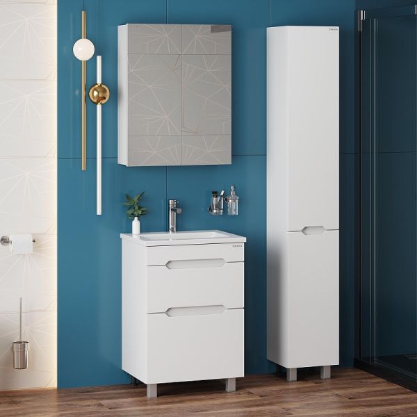 Напольная тумба для ванной комнаты Onika Айленд 60 сочетает в себе стильный минималистичный дизайн, белую глянцевую поверхность и высочайшее качество исполнения.