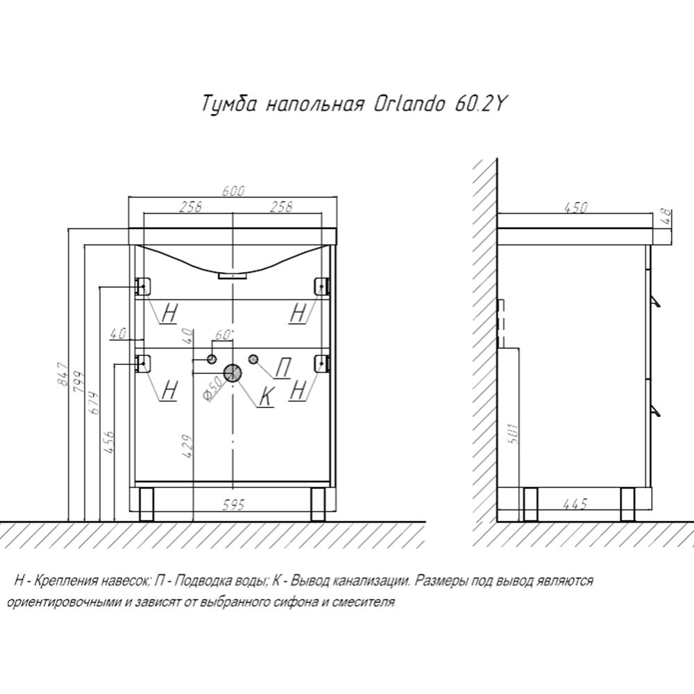 Тумба под раковину напольная Velvex Orlando tn.ORL.CLA.60.2Y графит, 60 см купить