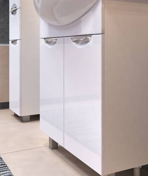 2 дверцы; 1 полка ЛДСП; ручка врезная металлическая хромированная; опоры квадратные регулируемыеМатериал корпуса: влагостойкая ЛДСПМатериал фасадов: ЛМДФПокрытие: пленка ПВХДверцы: петли с механизмом плавного закрывания.Ящики: направляющие полного выдвижения.