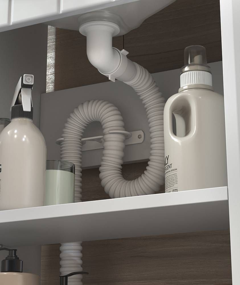 2 дверцы; 1 полка ЛДСП; ручка врезная металлическая хромированная, опоры квадратные регулируемые.Специальный сифон Vigo в комплектеМатериал корпуса: влагостойкая ЛДСПМатериал фасадов: ЛМДФПокрытие: пленка ПВХДверцы: петли с механизмом плавного закрыванияЯщики: направляющие полного выдвижения.
