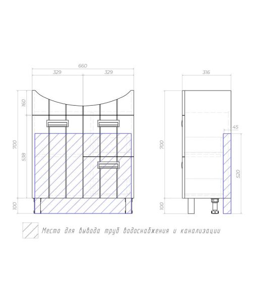 Тумба под раковину напольная Vigo Diana tn.DIA.BAL.70.1D.2Y 70 см белый