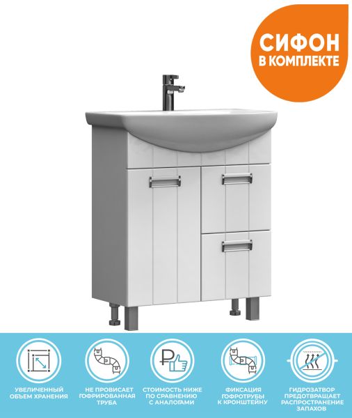 Тумба под раковину напольная Vigo Diana tn.DIA.BAL.70.1D.2Y 70 см белый купить