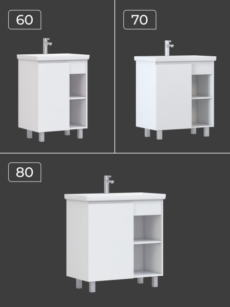Тумба Milos 60, напольная, 1 дверца, белая (под раковину Como 60). Оснащение: 1 дверца, петли с ... Подробнее