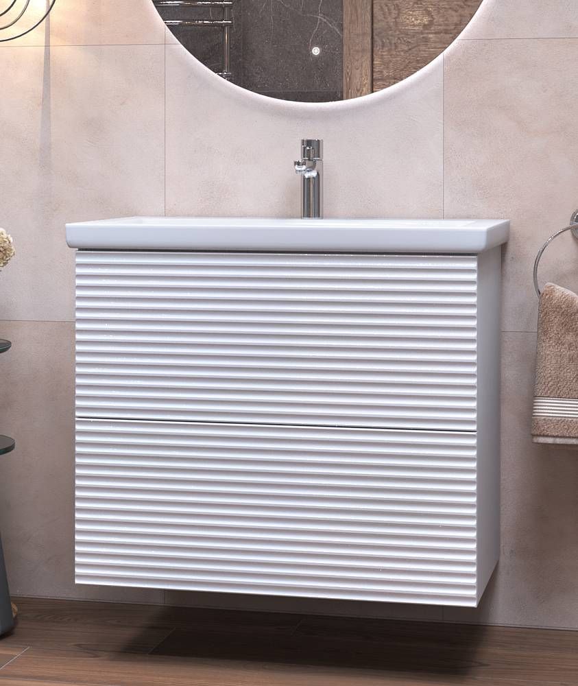 Тумбы Otti выделяются оригинальным исполнением фасадов, благодаря горизонтальной фрезеровке. Встроенный механизм push-to-open Hafele (Германия).Удобное открывание легким нажатием на фасадДва варианта размещения: напольное/подвесное