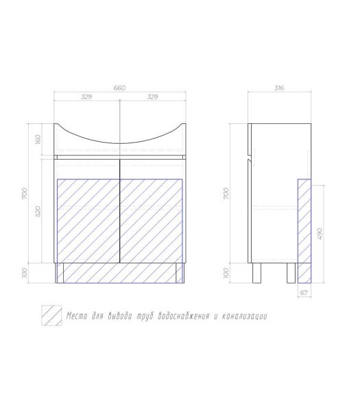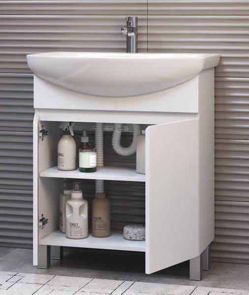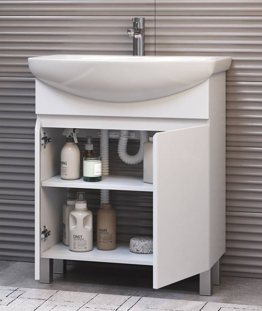 2 дверцы, 1 полка ЛДСП, опоры регулируемые квадратные.Специальный сифон Vigo в комплекте.Материал корпуса и фасада: влагостойкая ЛДСПДверцы: петли с механизмом плавного закрыванияОтсутствие лицевой фурнитуры – интегрированная в фасад ручка