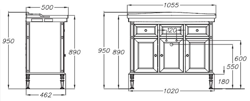 Габариты корпуса тумбы (ШxВхГ): 1020х843х462 мм.