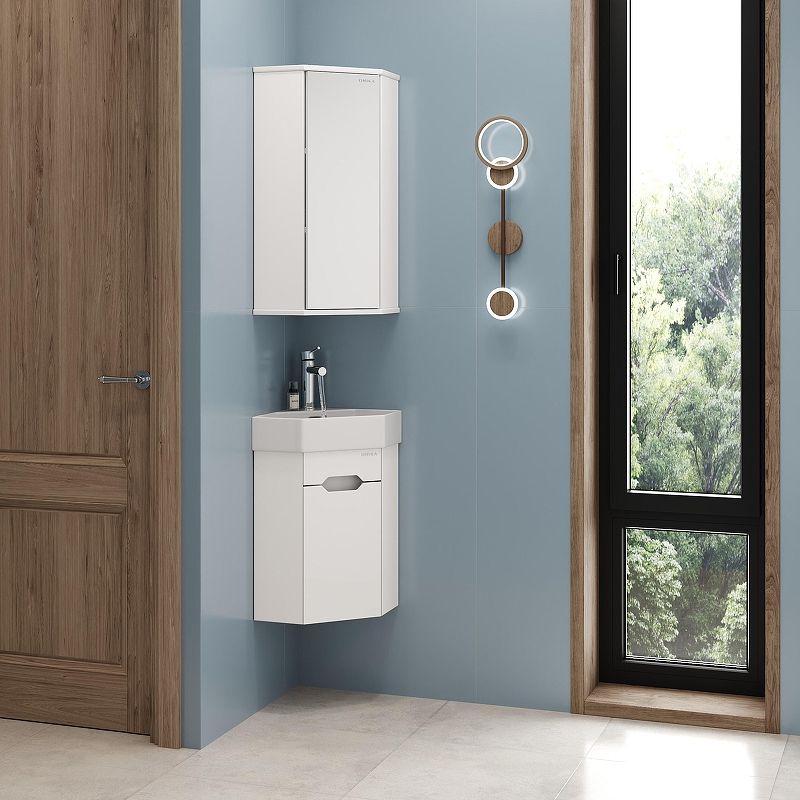 Подвесная угловая тумба для ванной комнаты Onika Айленд 35 сочетает в себе стильный минималистичный дизайн, белую глянцевую поверхность и высочайшее качество исполнения. Тщательно продуманная конструкция позволяет занять минимум места, а угловая форма поможет с пользой использовать пространство, которое зачастую остается незадействованным. За дверью скрывается вместительное внутреннее пространство, разделенное полкой. Корпус тумбы выполнен из ЛДСП, фасад - из ЛМДФ в пленке, устойчивых к механическим воздействиям, перепадам температур и высокой влажности. Интегрированная в фасад ручка позволяет сделать эксплуатацию мебели более удобной и практичной.