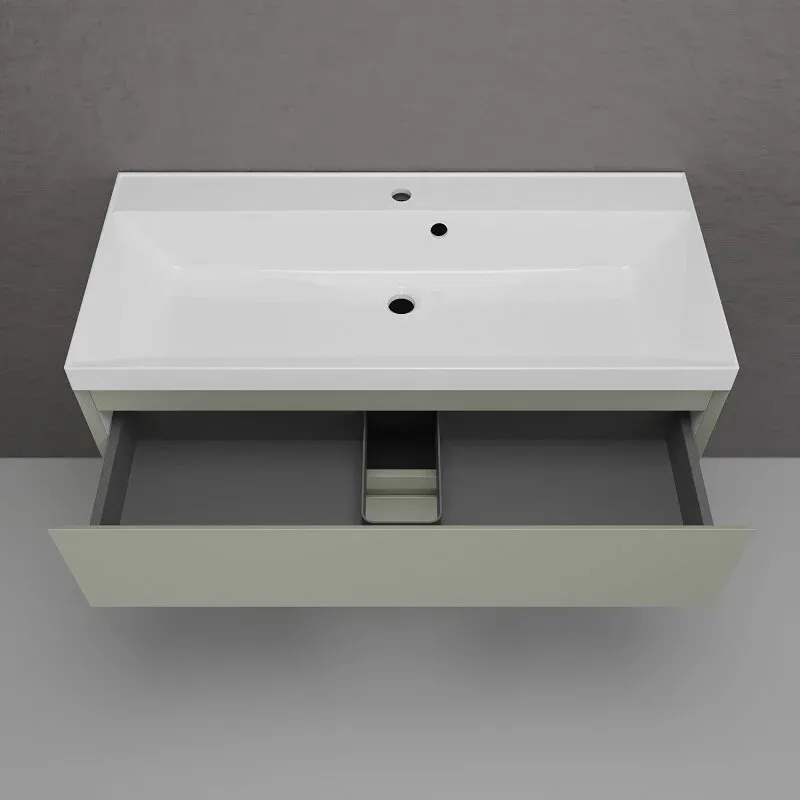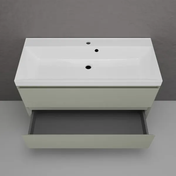 Эмаль премиум класса Hesse (Германия) с сатиново - матовым эффектом. Вместительные ящики оснащены системой плавного закрывания HETTICH. Раковина приобретается отдельно. Подходит раковина Asti 100 в белом цвете, графит, жасмин и серый шелк.