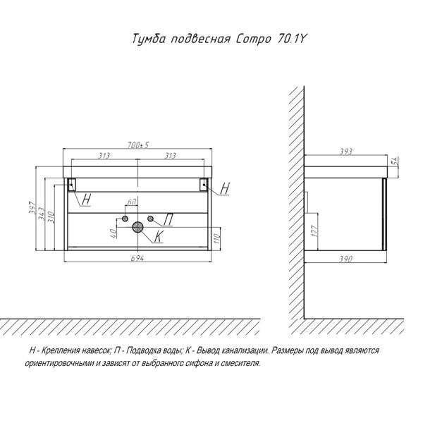Тумба под раковину подвесная Velvex Compo tp.COM.9696.70.1Y белый глянец, 70 см