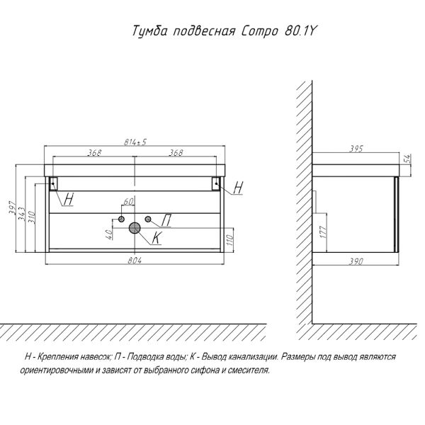 Тумба под раковину подвесная Velvex Compo tp.COM.9696.80.1Y белый глянец, 80 см: 1 выдвижной ящик с механизмом открывания push-to-open.