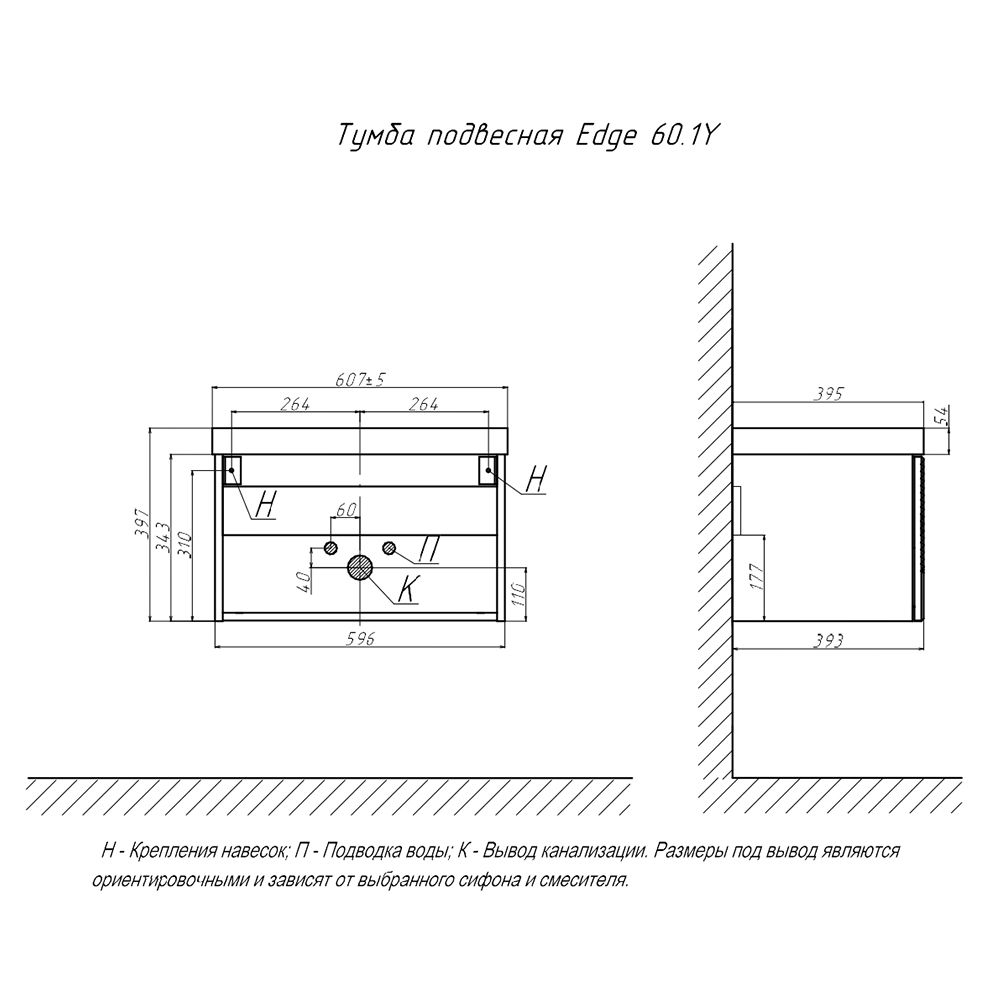 Тумба под раковину подвесная Velvex Edge tp.EDG.9696.60.1Y белый глянец, 60 см купить