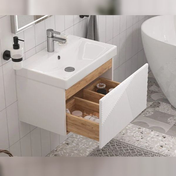 Тумба под раковину подвесная Velvex Edge tp.EDG.9696.60.1Y белый глянец, 60 см: 1 выдвижной ящик с механизмом открывания push-to-open.