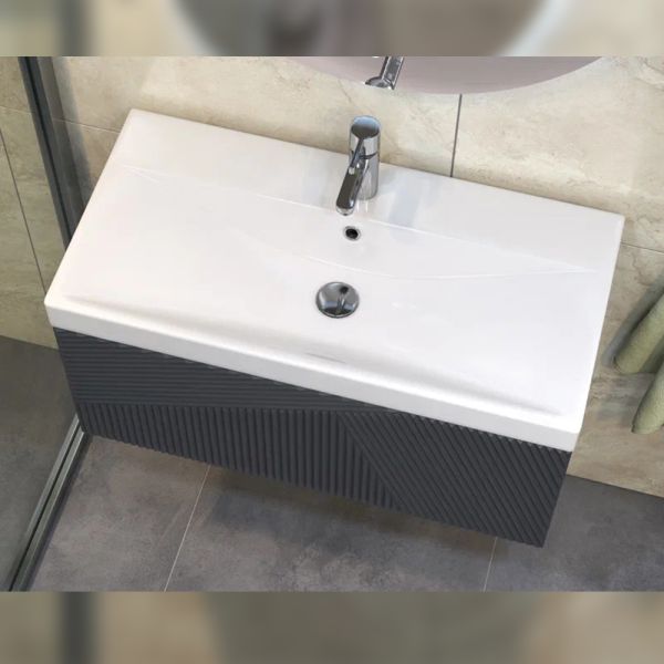 Тумба под раковину подвесная Velvex Edge tp.EDG.9696.80.1Y графит, 80 см: 1 выдвижной ящик с механизмом открывания push-to-open.